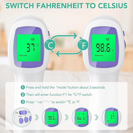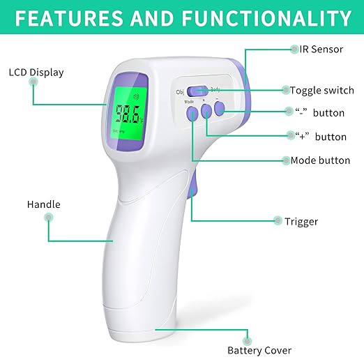 - Multifunctional: The forehead thermometer is designed for all ages, adults, babies and elders. In addition to measuring forehead, it can also measure room, object, and liquids temperature. Great choice for families, nursery, hotels, school.