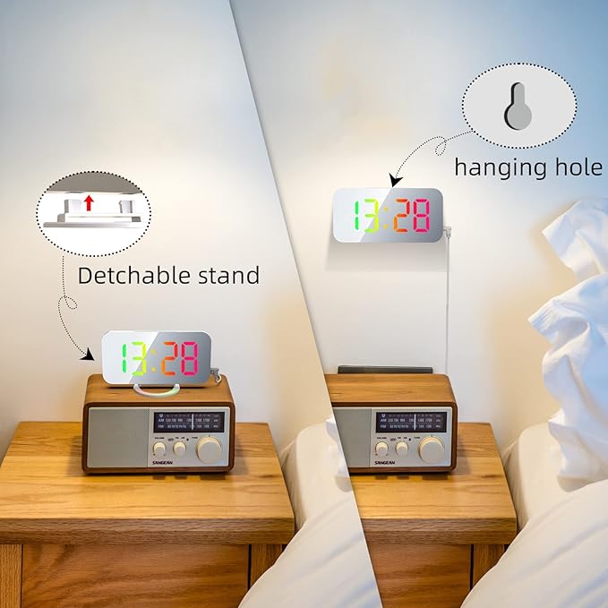 - ⏰ Detachable Base & Hanging Hole–The design of detachable base make make it can be as a desk clock,but also can used as a digital wall clock.The simple and modern clock is an ideal Christmas gift for your friends,families.