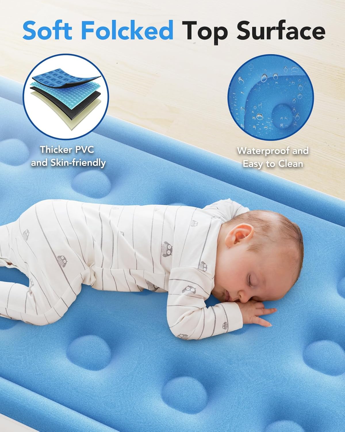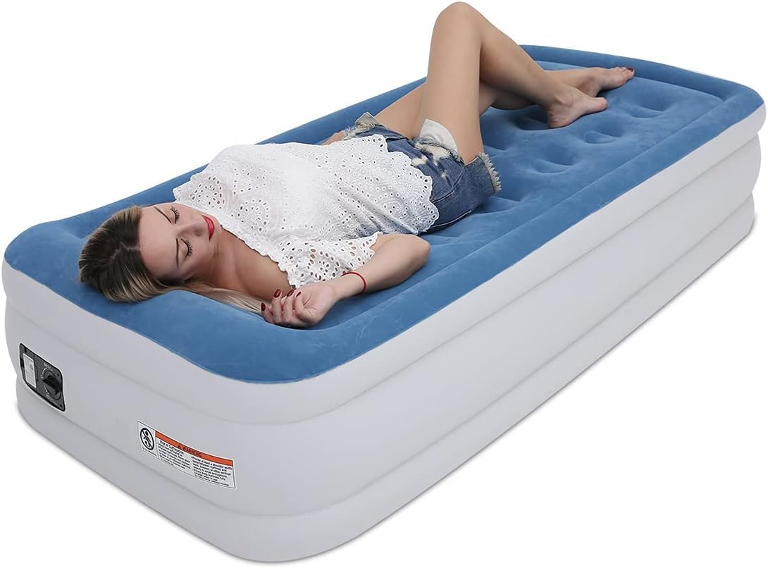 DURABLE & STURDY – The extra thick, durable and waterproof flocked top layer of the air mattress is made from a durable multi-layer material that resists accidental scratches and scuffs and prevents leaks or slips while sleeping.