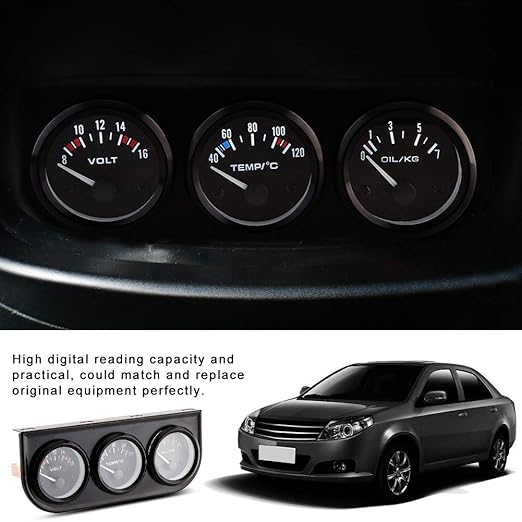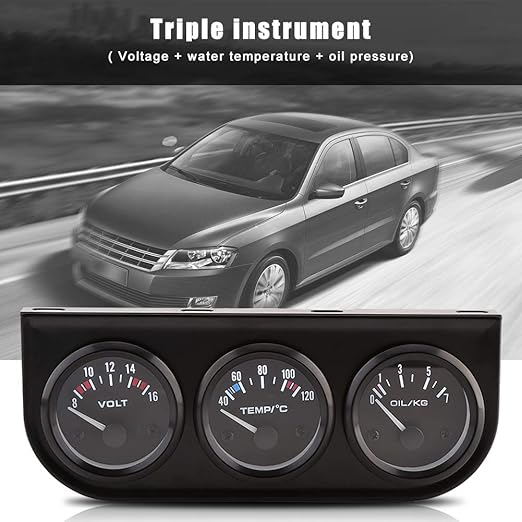 • 【Applicable Scope】This Triple Gauge Kit fits for cars/trucks/tractors and marine engines. 3 in 1 design, includes voltmeter, water temperature gauge and oil pressure meter.