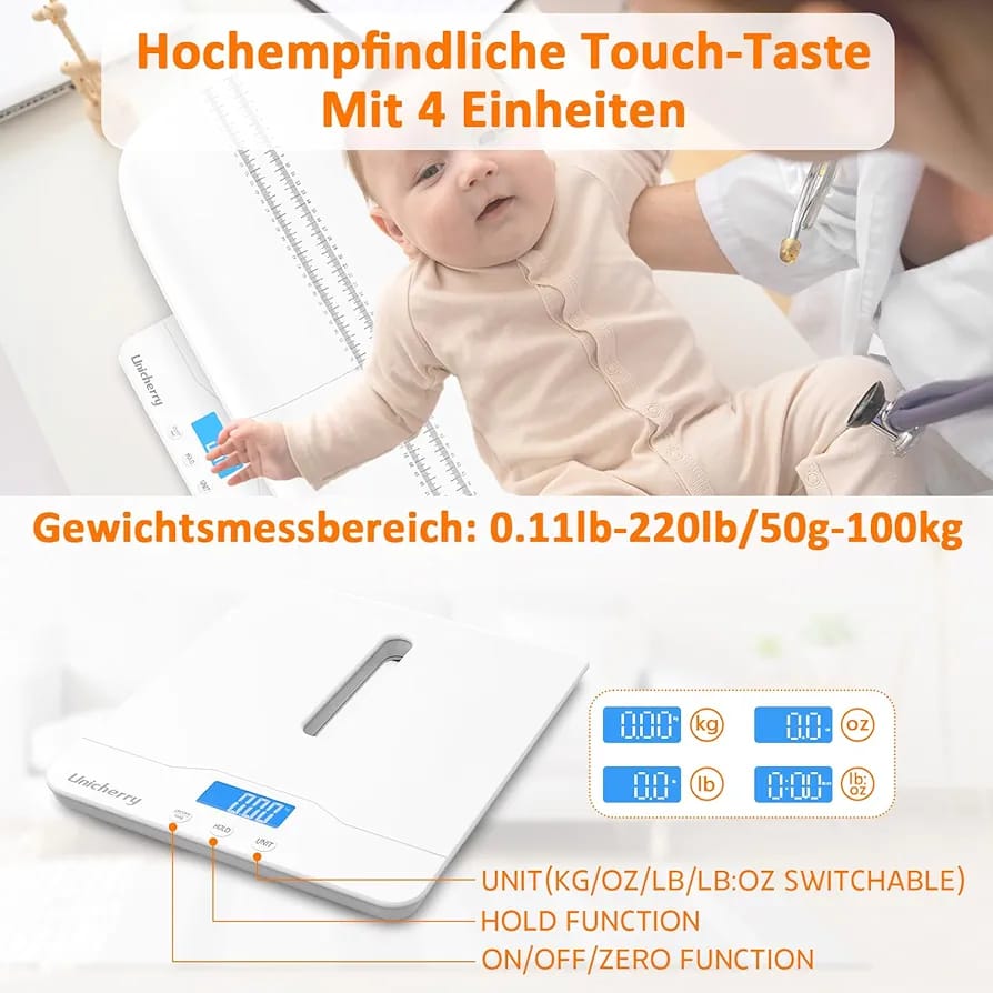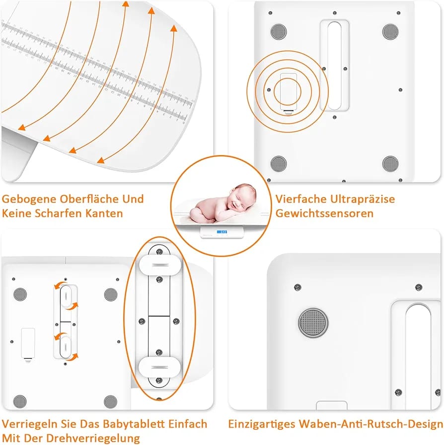 High-quality material – The baby scale is made of high-quality materials and is durable. The sturdy construction ensures durability and longevity, even with frequent use. The non-slip surface and concave design ensure stability for your baby and ensure that it is safe during the weighing process.