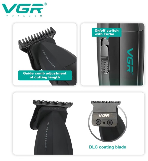 Vgr Combo Set|Vgr 274|9000 RPM Super-Strong Motor:Equipped with a powerful 9000 RPM motor, this trimmer delivers swift and efficient cuts for all hair types.