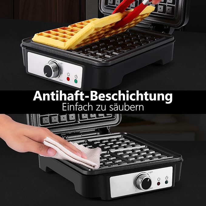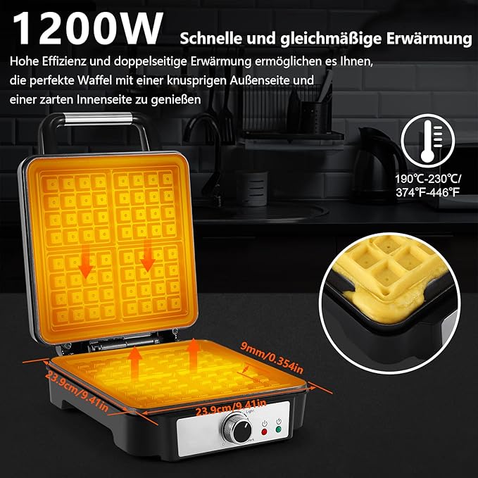 - Powerful waffle iron: with a heating element of 1200W, this waffle iron guarantees fast and even cooking and produces thick, fluffy waffles just like in restaurants
