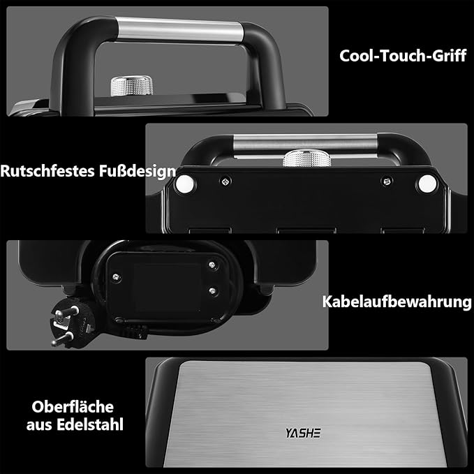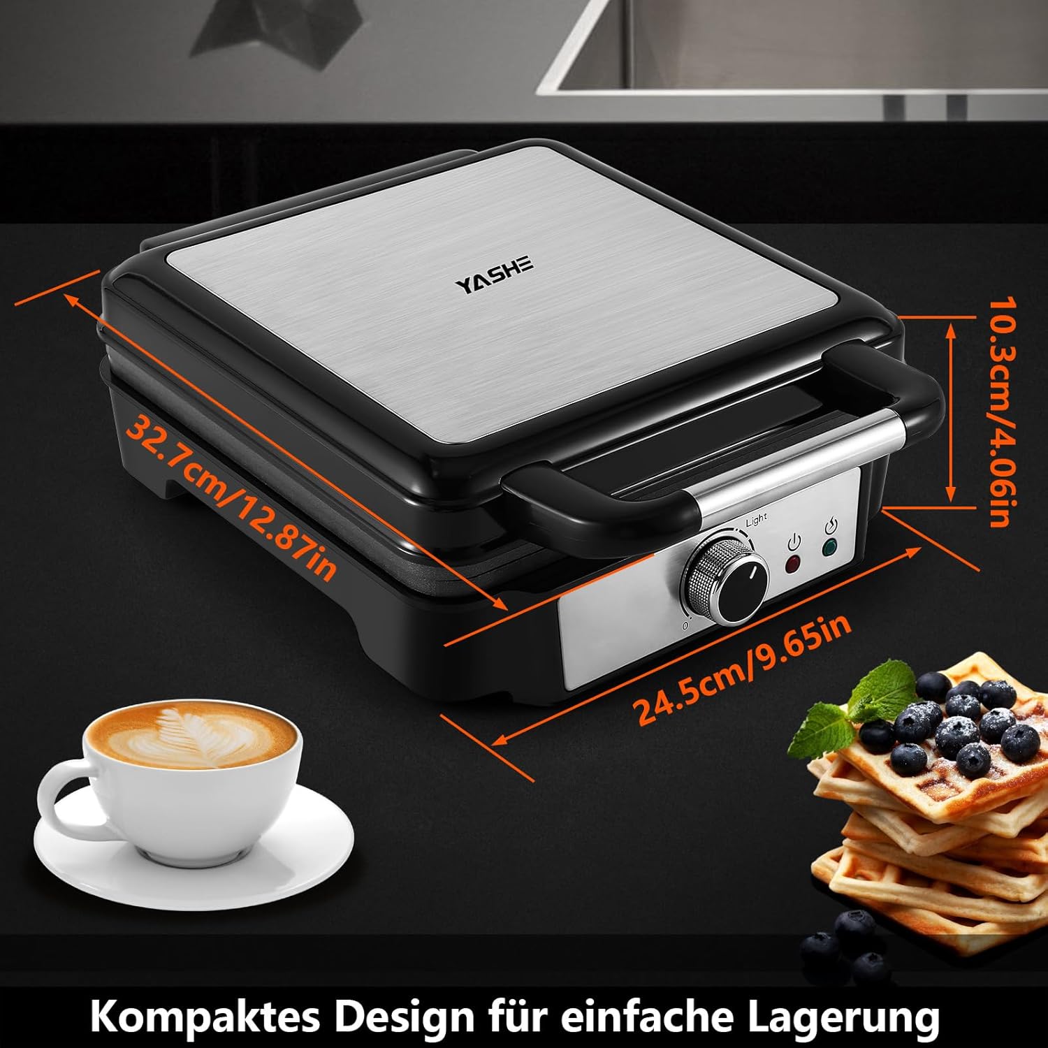 - YASHE Belgian waffle iron: this waffle iron Belgian waffle allows you to prepare up to 4 Belgian waffles in minutes, meeting the needs of the whole family