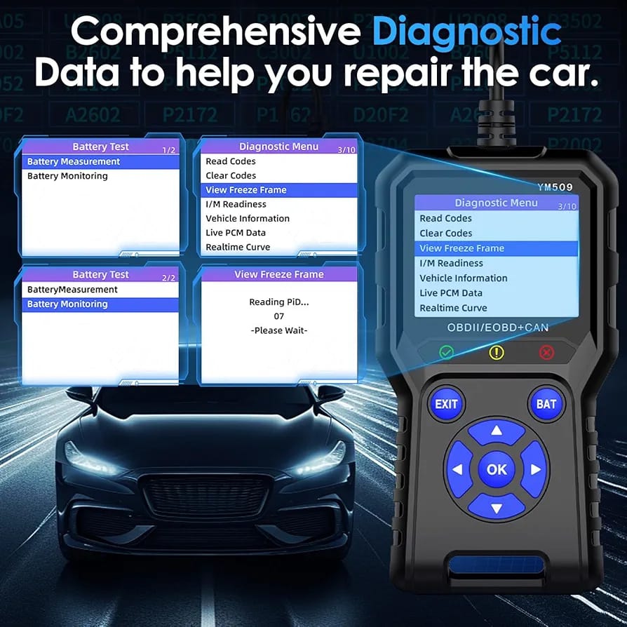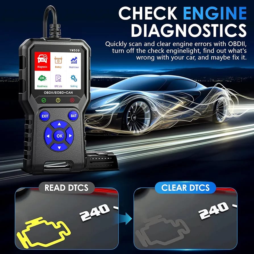 【Multifunctional OBDII Scanner】Practical multifunctional OBD2 diagnostic tool with built-in OBD2 DTC search library, can help you find engine lights, I/M data, read codes, clear codes and block display cause frames, vehicle information, data streams, real-time curves, vehicle speed information, load values calculation and engine coolant temperature determination