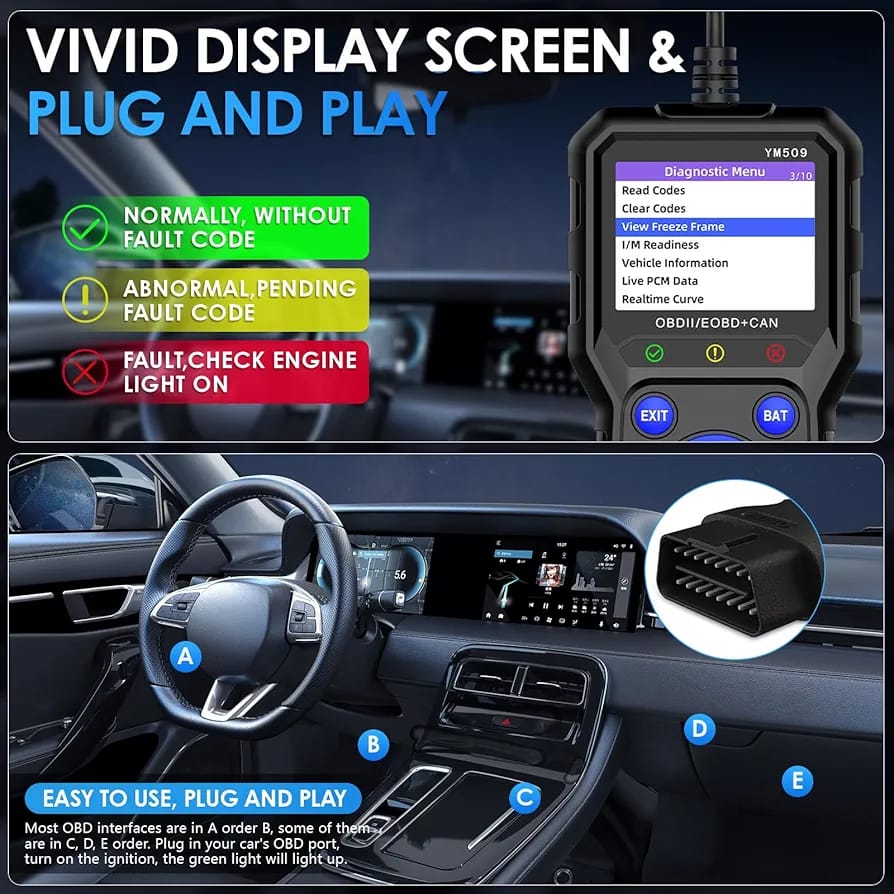 【Easy to Use】This OBD2 has a 2.8 inch high-definition color screen, the engine code reader displays richer and more numerous content, and has 7 silicone buttons for easier operation. The code reader cable is made of very thick flexible insulating material and requires no batteries or chargers because it is powered directly from the OBDII data connector in the vehicle
